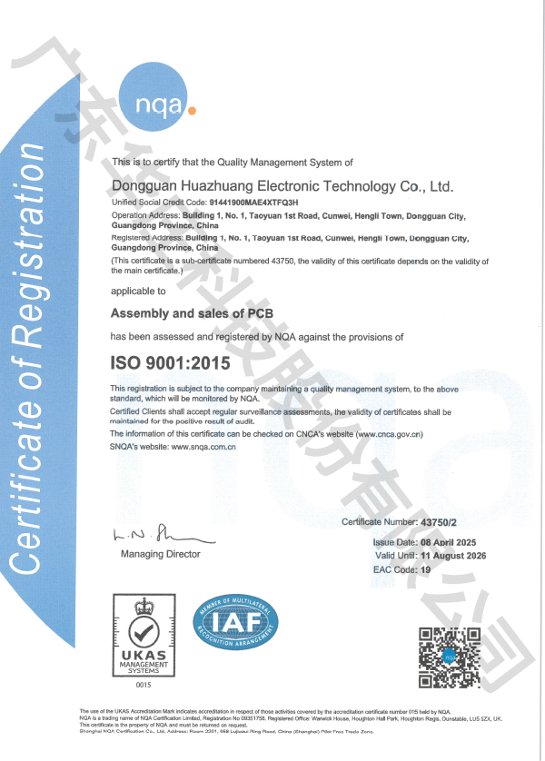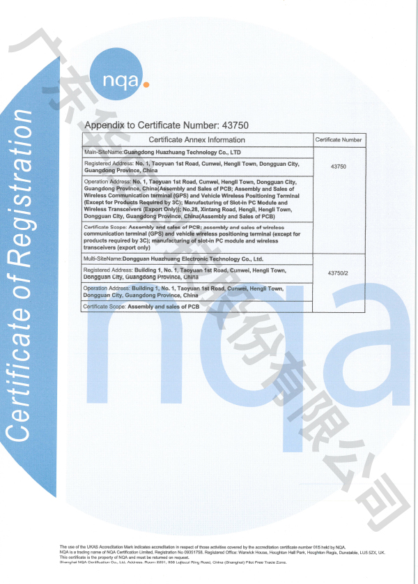 ISO 9001 Guangdong Huazhuang Dongguan Huazhuang