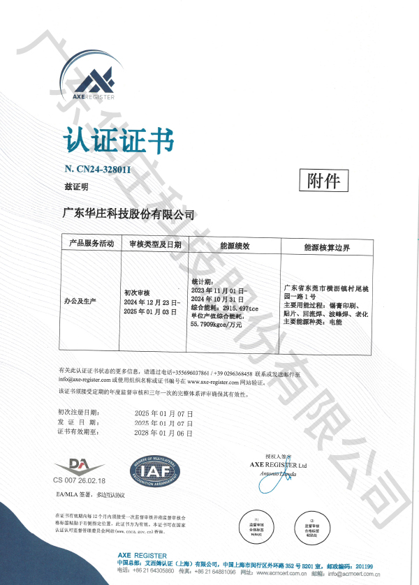 ISO 50001 Guangdong Huazhuang ( Taoyuan Factory )
