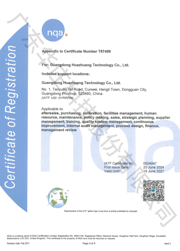 IATF 16949 Guangdong Huazhuang ( Taoyuan Factory )
